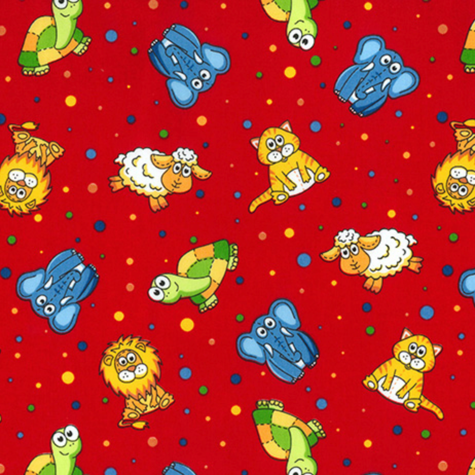 Red Baby Animals Children's Fabric Design 100% Cotton Poplin