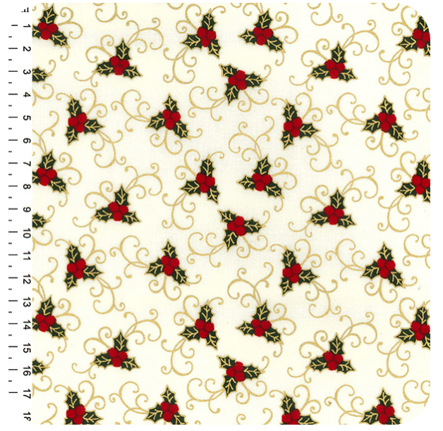Christmas Elegance – Ivory & Gold Holly 100% cotton fabric 54" wide per 1/2 metre