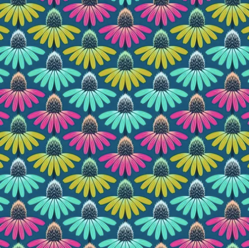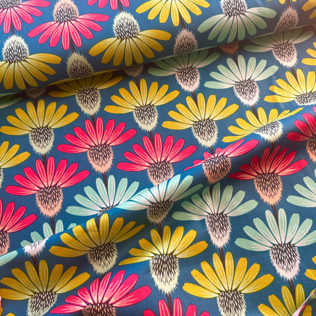 Perennial Borders, Echinacea Teal 100% Premium Cotton Fabric 112cm Wide Sold Per Half Metre