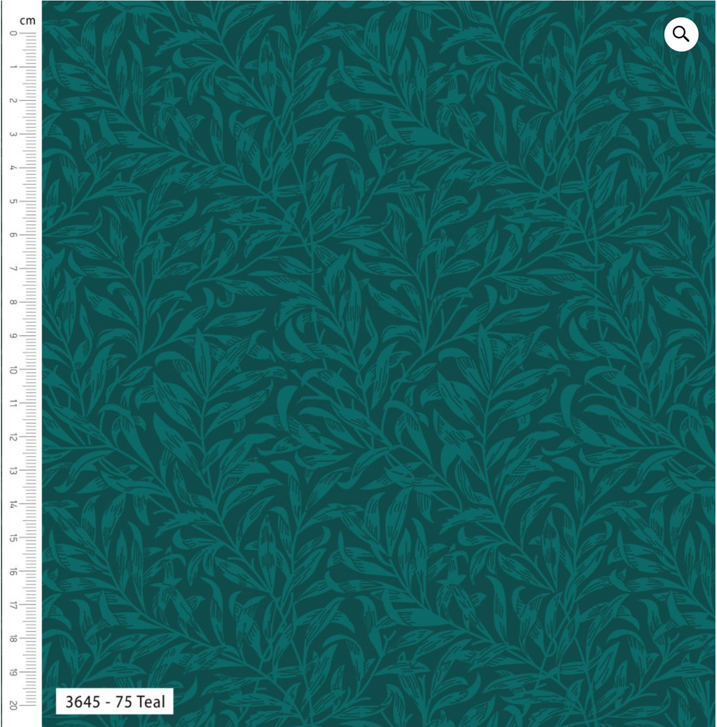 William Morris Teal Willow Bough 100% Cotton Fabric - Sold Per Half Metre