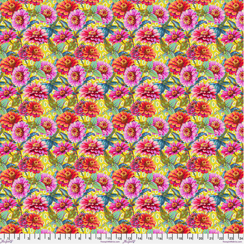 Yellow Zinnias Festival By Free Spirit 100% Premium Cotton Fabric Sold Per 1/2 Metre