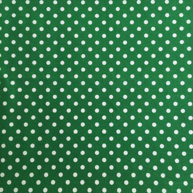 Green Polycotton Polka Dot fabric 112cm Wide, Sold Per METRE