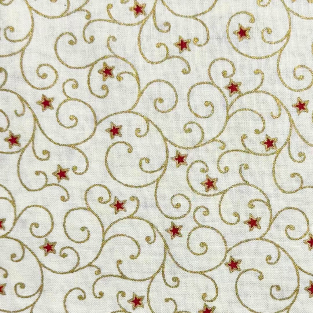Gold Ivory & red Christmas Swirl 100% cotton fabric 44" wide per 1/2 metre