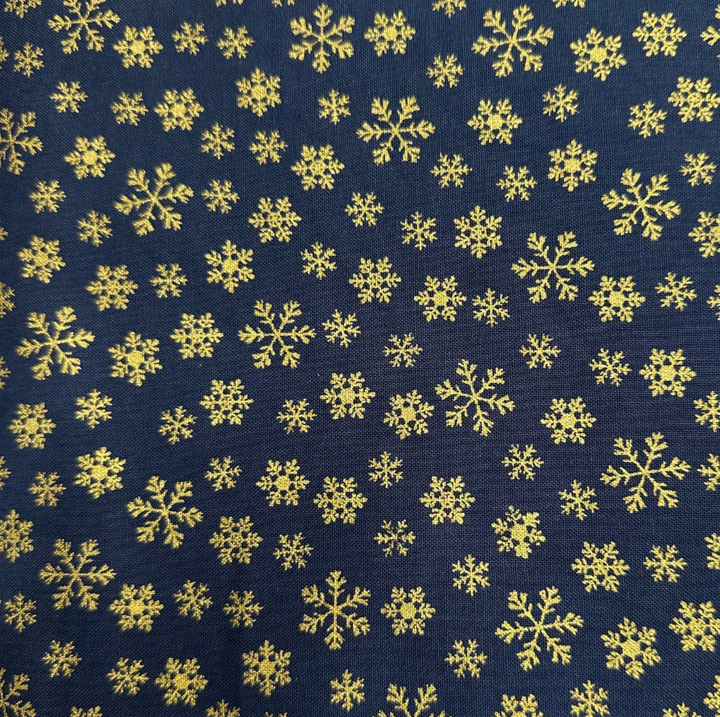Navy Blue & Gold Christmas Snowflake 100% cotton fabric 44" wide per 1/2 metre